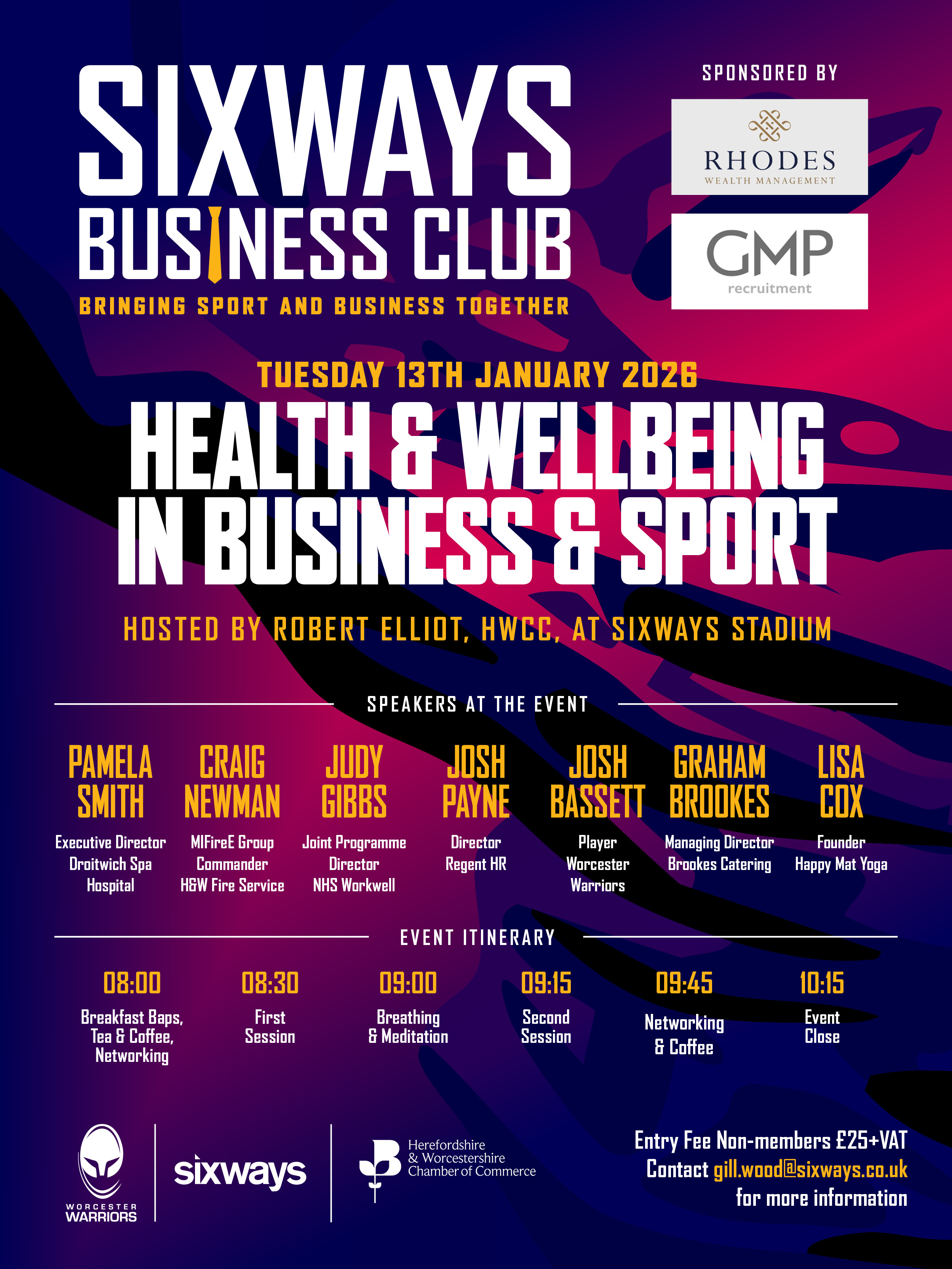 Following the outstanding success of our launch event, the Sixways Business Club returns for its second instalment, this time focusing on one of the most vital topics for modern organisations: Health & Wellbeing in Business & Sport.